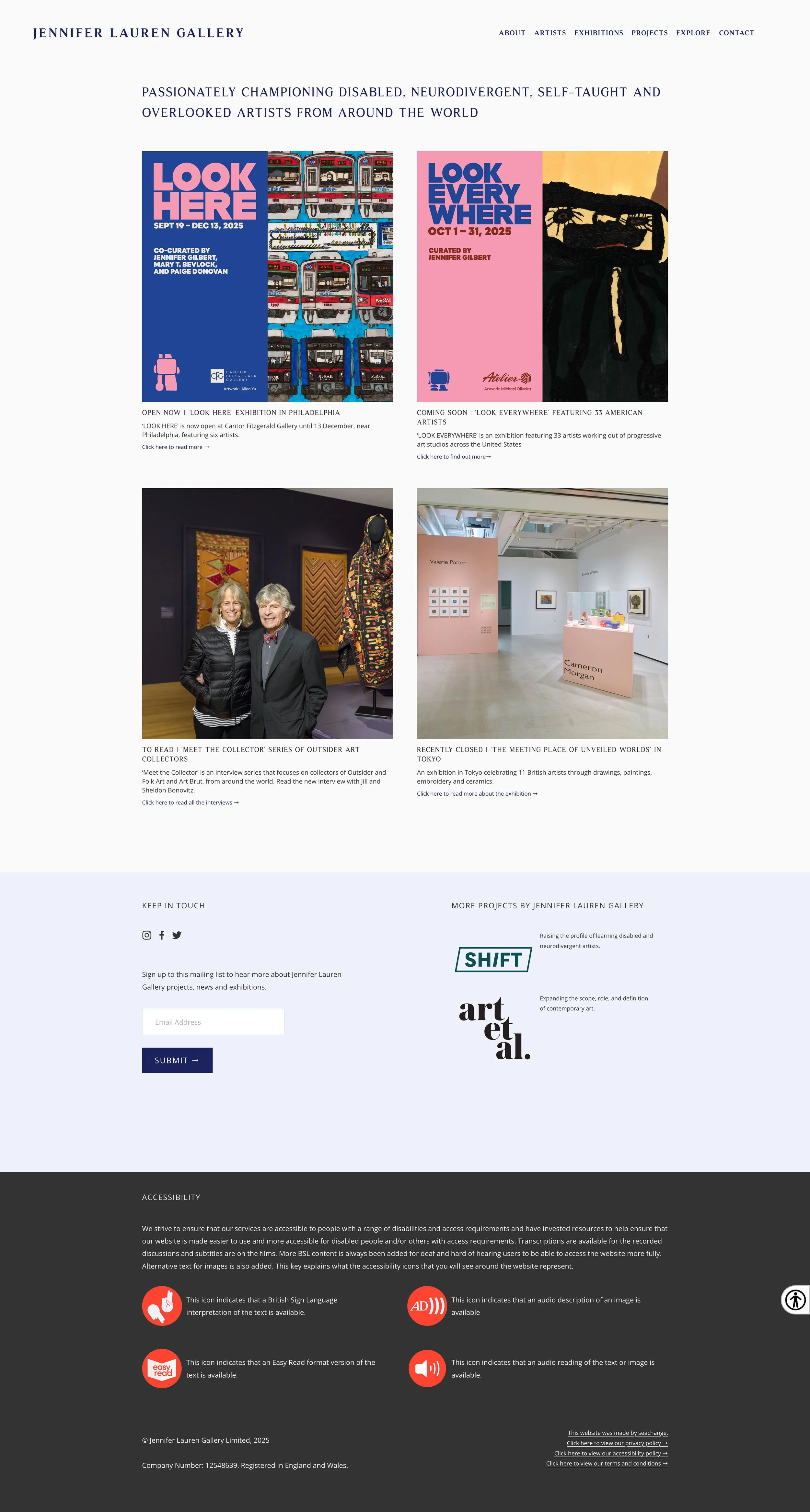 seachange studio has worked with Jennifer Lauren Gallery since its founding in 2017, providing design, development and ongoing digital strategy. The most recent phase of the collaboration involved a complete redesign of the gallery’s website, centred on accessibility and inclusive user experience.